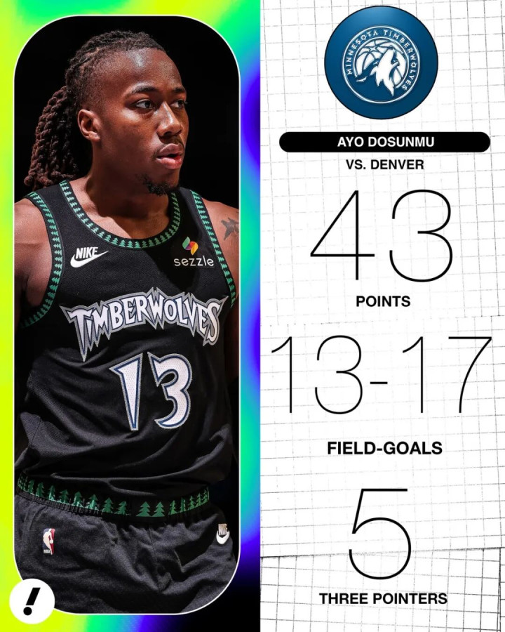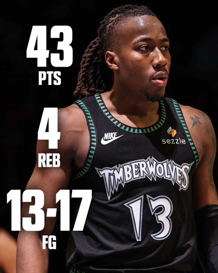 有趣的是,25分当时刷新了森林狼队史季后赛替补最高分,仅仅两天后,他就用又一场43分大幅提高这一纪录。